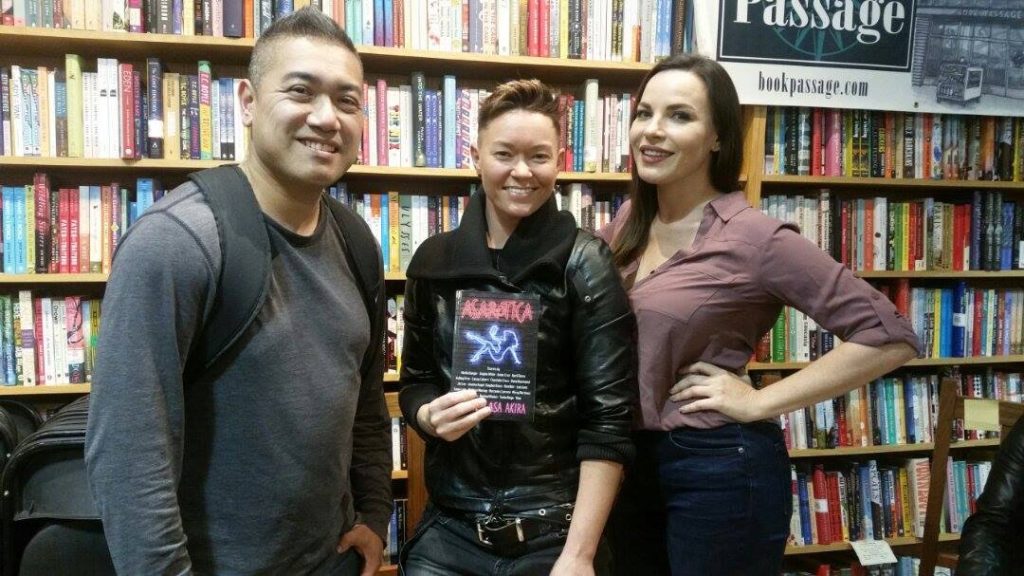 This time, I met her, along with Dana Dearmond and Jiz Lee (stop giggling) at Book Passage downtown San Francisco in the Ferry building. They were promoting, and reading, from their book, Asarotica – short stories of their favorite erotic fantasies (told you, stop giggling).