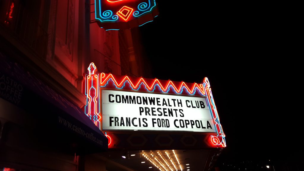 Tonight I got to see Francis Ford Coppola speak at the Castro theater in San Francisco! Famous director of classic films like The Godfather trilogy and Apocalypse Now. You can find the full replay on The Commonwealth Club Facebook.