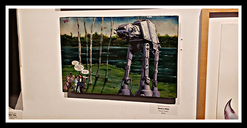 When I have random stuff to get rid of, and I have no place to donate them, I tend to give them to Karla because she either knows where to give them to the needy, or she finds a way to turn the stuff into art. Recently, I gave some Star Wars comics to her, expecting her to donate to some kids to fight illiteracy but instead, she turned it into a $259 piece-of-art on display at the Palette Gallery in San Francisco. On display until end of Jan 2020, and available for purchase.