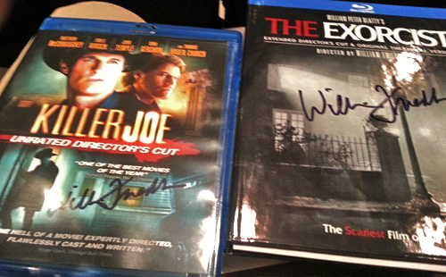 When it came to the meet and greet part of the event, I had my copies of “The Exorcist” and “Killer Joe” in hand, excitedly anticipating to speak to William Friedkin, in person. The hostess of the event shouted toward us in line,”Signing the books only! He will only be signing the books only!” We all groaned. Some folks in front of me even pleaded to the hostess, but the hostess insisted that we need to keep the line going. “How about I just have him sign my DVD instead of the book?” said one Friedkin fan, as he waved his copy of “The Exorcist”. The hostess was a bit resistant to the idea, but she responded with a mumbled,”…okay, only one item per person.”