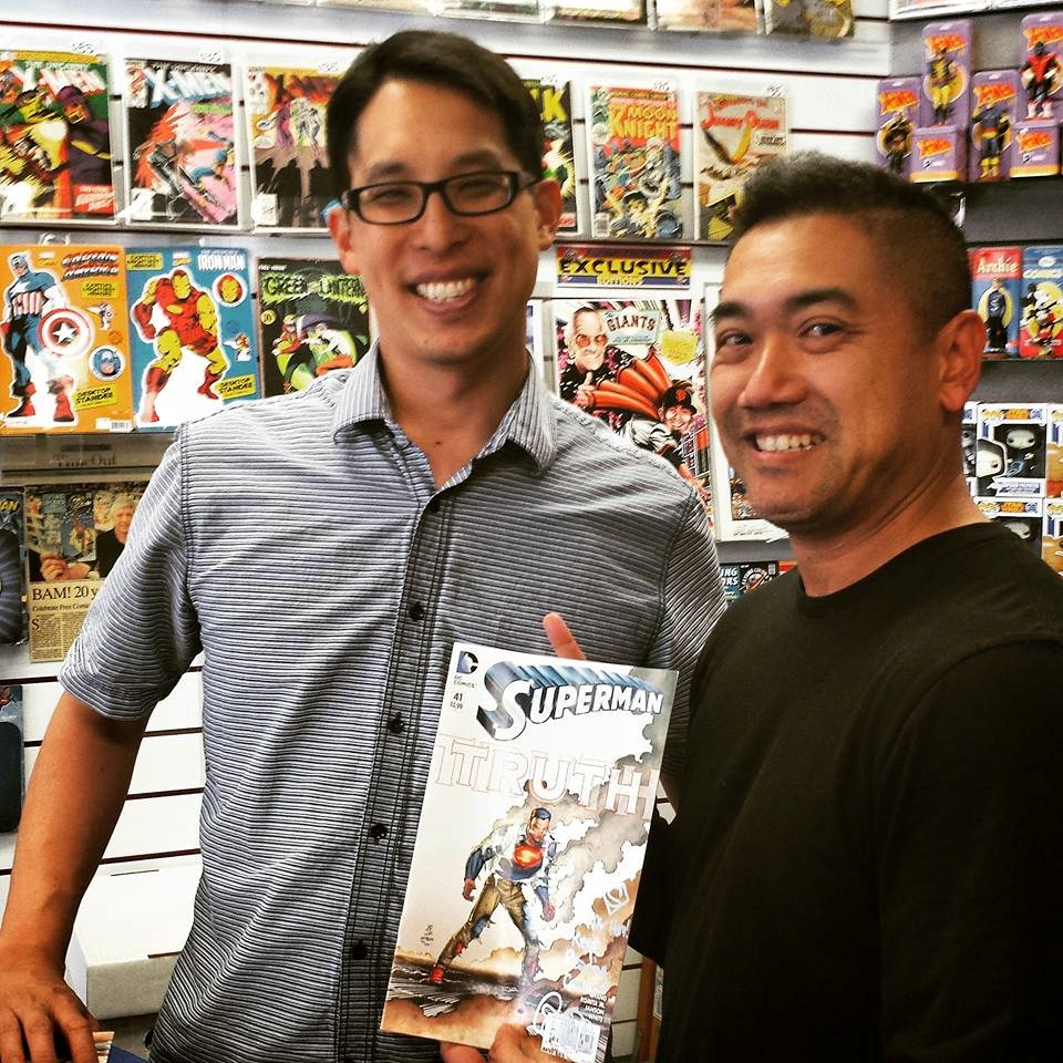 Got to meet Gene Luen Yang, again! Today premieres his first comic issue for a story of a New Chinese Superman! He was signing at Flying Colors Comics & Other Cool Stuff in Concord. This guy gets more famous every time I meet him.